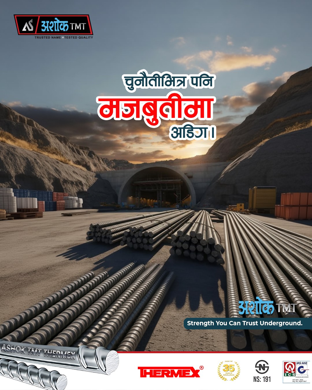 Ashok Steel Industries (P) Ltd. is an NS-certified company, and our products conform to accepted national standards for mechanical and chemical properties. Our consistent quality has earned the trust of engineers, contractors, developers, and government agencies across Nepal.
